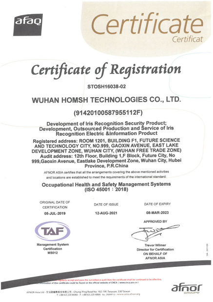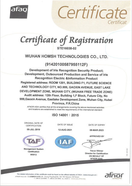 Την τελευταία δεκαετία, η Homsh Technologies ήταν πρωτοπόρος στον τομέα της αναγνώρισης της ίριδας.τη συνέχιση της τεχνολογικής καινοτομίας και την ανάπτυξη κορυφαίων στον κλάδο βασικών αλγορίθμων και τεχνολογιών τσιπ ολοκληρωμένων κυκλωμάτωνΗ εταιρεία έχει τιμηθεί με πάνω από 60 βραβεία και αναγνώριση σε διάφορα επίπεδα, από το εθνικό έως το επαρχιακό, αποδεικνύοντας την ισχυρή και βιώσιμη ανάπτυξή της.Ο Χομς έχει αποκτήσει 18 επιχειρηματικά προσόντα., συμπεριλαμβανομένης της αναγνώρισης ως Εθνική Επιχείρηση Ανώτατης Τεχνολογίας και της λήψης πιστοποιητικών όπως το ISO 9001:2015, ISO 14001:2015, και ISO 45001:2007Η εταιρεία έχει επίσης κερδίσει 16 εταιρικά βραβεία, όπως το βραβείο αριστείας πατεντών της Κίνας και το βραβείο χρυσού πατεντών της επαρχίας Hubei.Η δεξαμενή ταλέντων της έχει 13 διακεκριμένες αναγνώσεις, συμπεριλαμβανομένου του προγράμματος "100 ταλέντα" του Χουμπέι.Η εταιρεία είναι μέλος εννέα βιομηχανικών ενώσεων.συμπεριλαμβανομένης της στρατηγικής συμμαχίας για τη βιομετρική καινοτομία, και συνέβαλε στην ανάπτυξη οκτώ εθνικών προτύπων για την κινητή βιομετρική ταυτοποίηση και συναφείς τομείς.